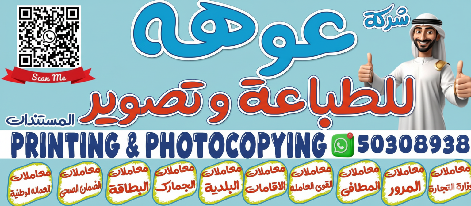 شركة عوهه للطباعة والتصوير وتخليص المعاملات والمستندات هي من أقدم الشركات الموجودة في حولي , الكويت.